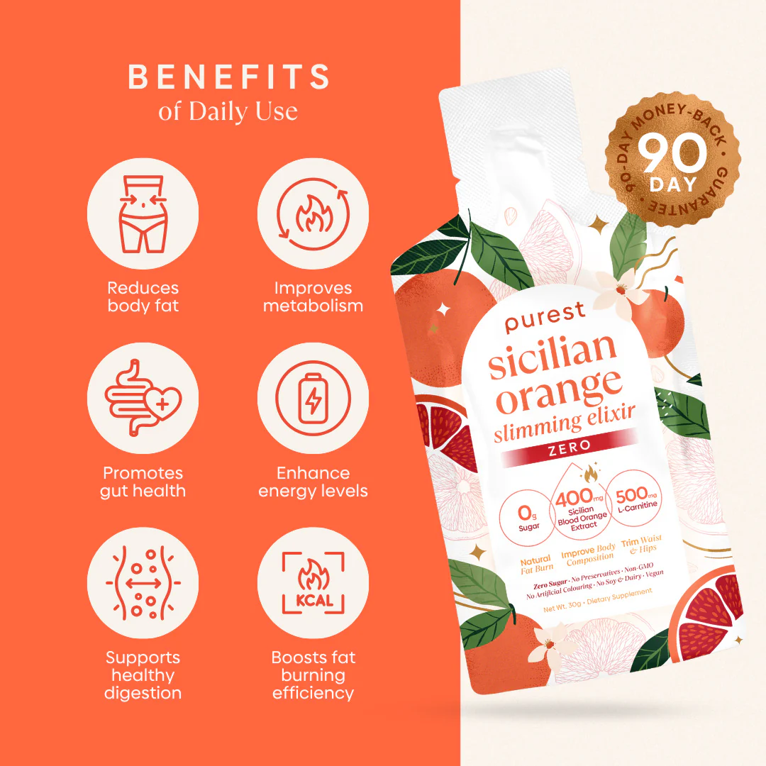 Our Sicilian Orange Slimming Elixir Zero is just as potent in targeting stubborn fat accumulation as the original formula, but we’ve made it suitable for the sugar-conscious who also want to be in on this citrusy secret to slim!
